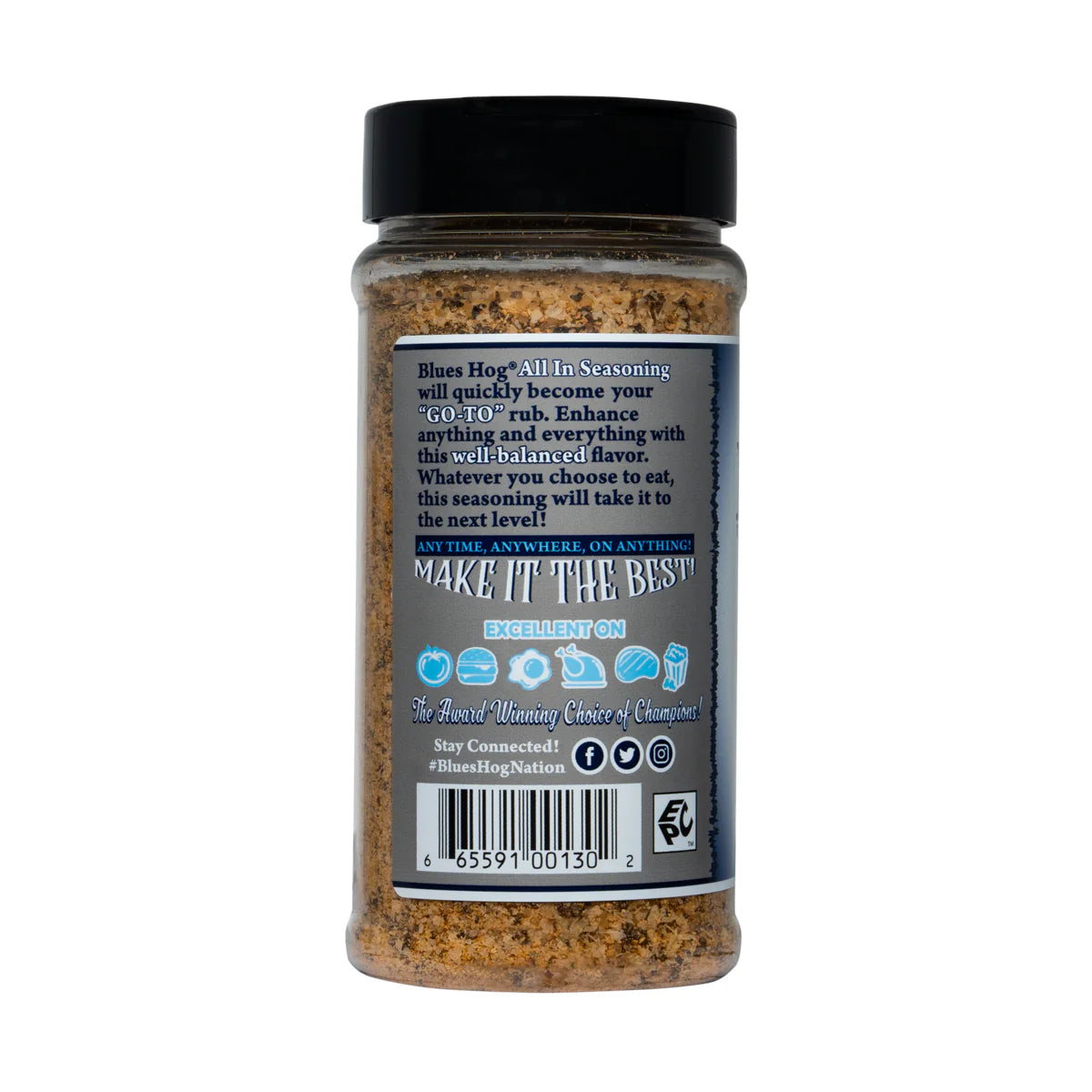 Blues Hog All In Seasoning will quickly become your "GO-TO" rub. Enhance it all with this well-balanced flavor. Whatever you choose to eat, this seasoning will take it to the next level! Anytime, Anywhere, on Anything! Make it the Best!