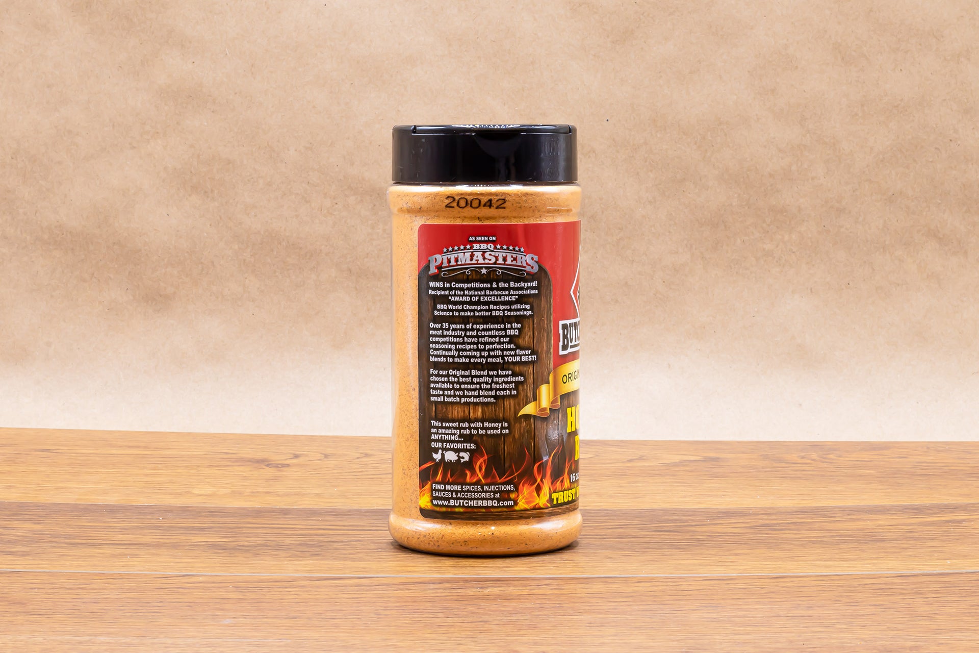 Introducing Butcher BBQ's Honey Rub "The Original," the secret ingredient that will elevate your grilling game. This mouthwatering blend of spices and real honey adds a burst of flavor to chicken, pork, or ribs, making them extraordinary. Crafted by BBQ enthusiasts, this rub brings out the natural taste of the meat without overpowering it. Easy-to-use and loved by backyard cooks worldwide, it's the recipe for barbeque perfection. Prepare for a culinary adventure as every bite bursts with the sweet harmony of spices and rich essence of honey. Elevate your grilling expertise, impress your guests, and become the hero of every cookout. Order now and savor the tantalizing flavors that await you.