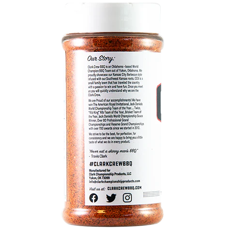 Clark Crew BBQ are the award winning "Rib Kings" and they strive to be the best in everything that they do. Clark Crew BBQ Royal Rib Rub is about as good as it gets. A versatile run that works on ribs, pork, poultry, beef and seafood. Give this world champion rub a try today!