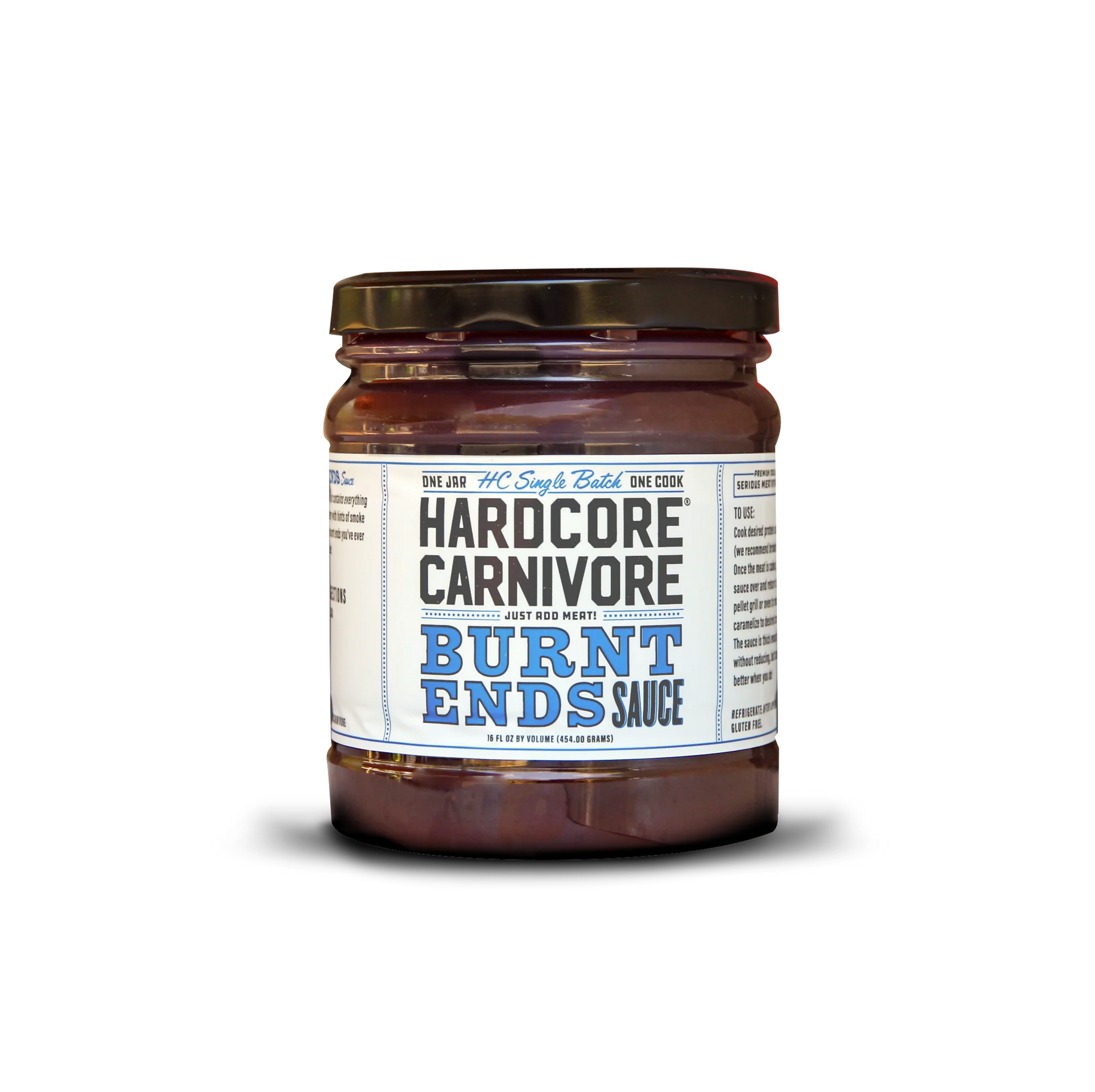 Hardcore Carnivore Burnt Ends Sauce is formulated specifically for all your meat candy needs. This one jar contains everything you need to finish off your burnt ends - it's sweet, sticky and buttery with hints of smoke and spice. Let's put it simply - our sauce will make the best damn burnt ends you've ever put in your mouth.