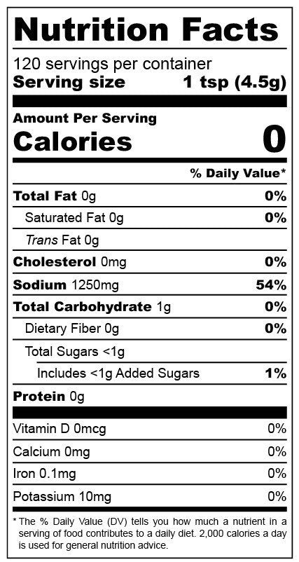INGREDIENTS: Salt, dextrose, 4.52% monosodium glutamate, spices, spice extractives, .1% each of BHA, BHT, and citric acid.