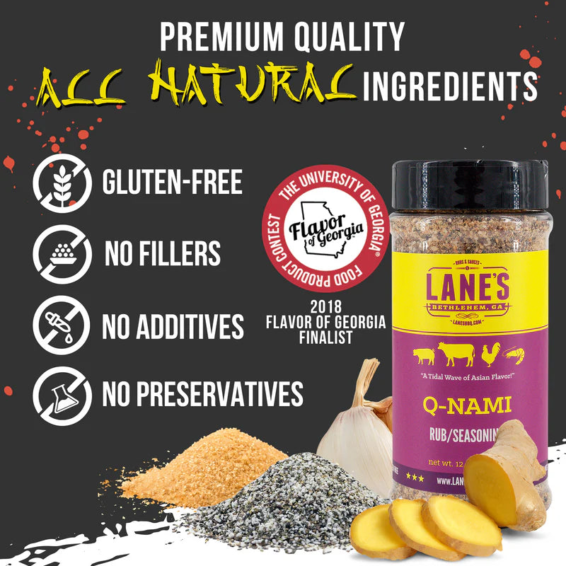 Premium Ingredients and Award-Winning: Q-Nami Rub is crafted with a blend of premium spices and seasonings, ensuring top-notch quality and flavor. It was also recognized as a 2018 Flavor of Georgia Finalist in the Sauces & Seasonings category, highlighting its excellence and appeal in the realm of BBQ and seasonings.