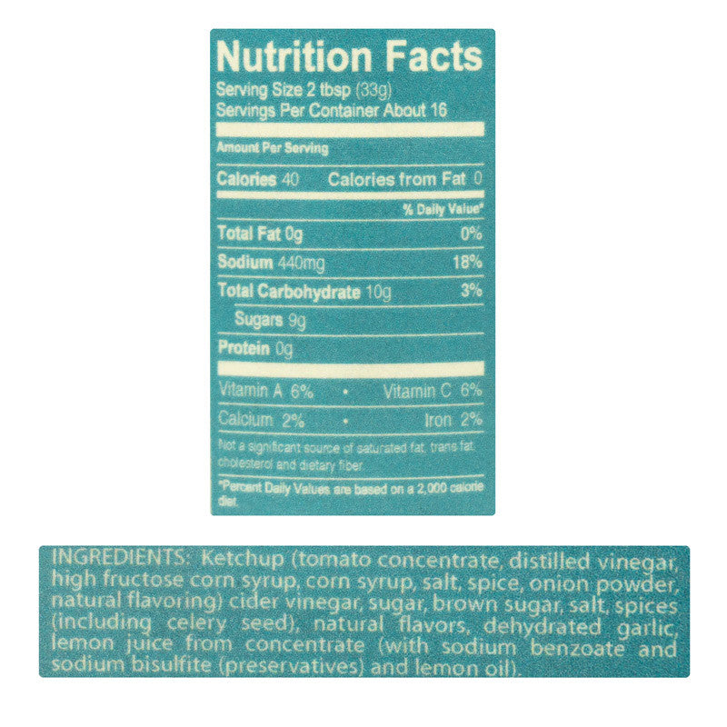 - Ingredients: water, tomato paste, sugar, apple cider vinegar, distilled vinegar, brown sugar, salt, spices (including celery seed), natural flavors, dehydrated garlic and onion, lemon juice concentrate.
