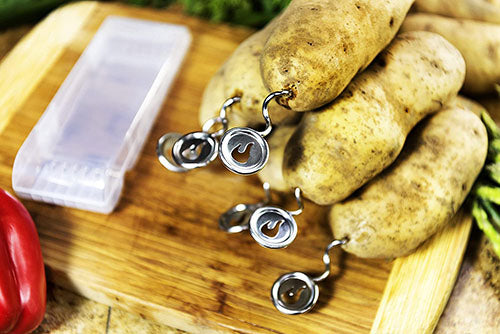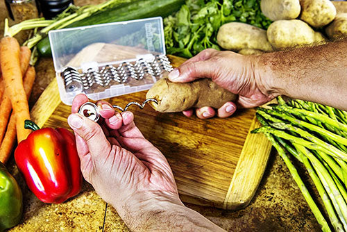 - A convenient storage case holds all six stainless Steel potato screws