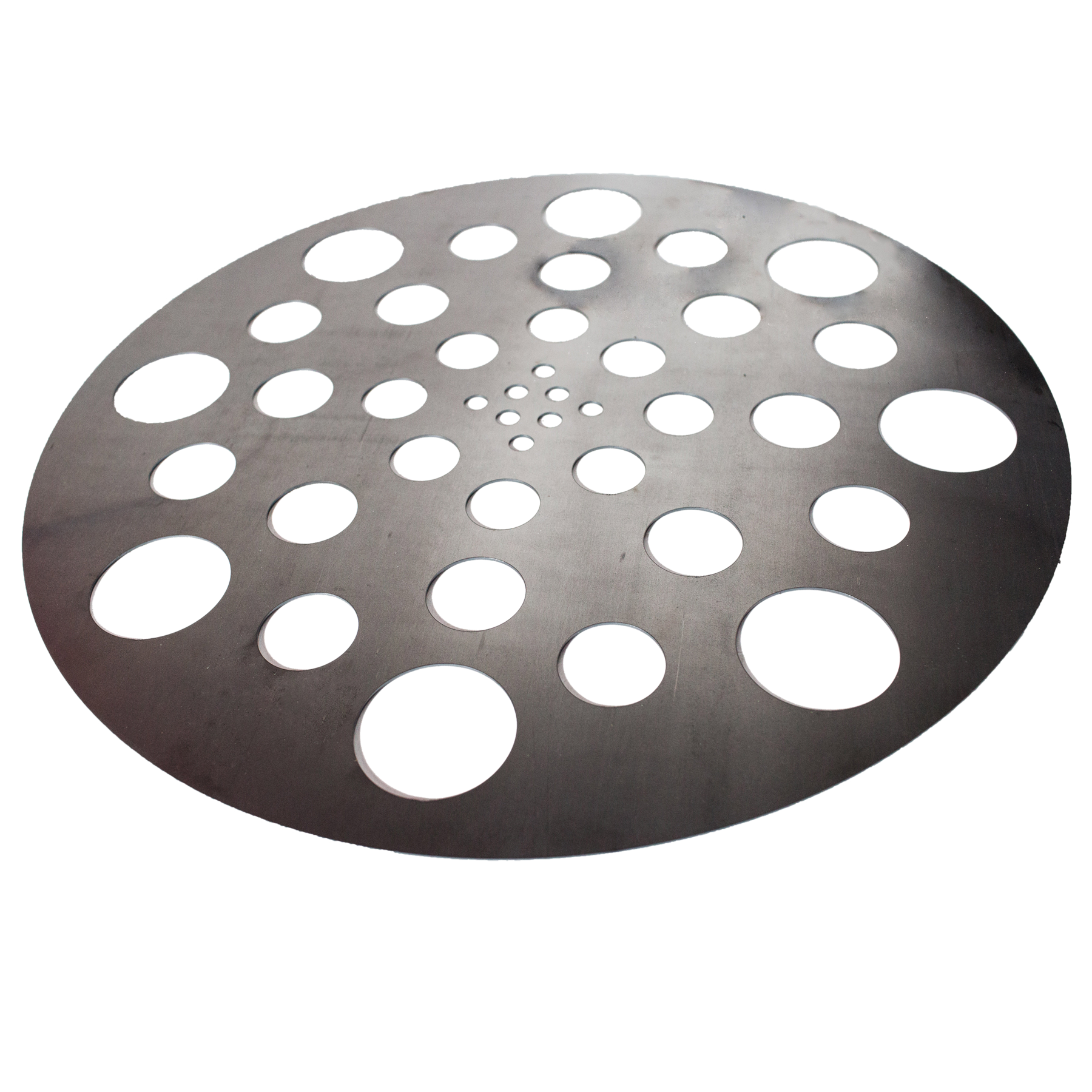 The Heat Diffuser Plate may be placed on the bottom grate level and used to disburse the direct heat from the fire basket creating a more indirect heat source effect. It is a perfect accessory for cooks desiring a low & slow cooking method. Fits 55 Gallon Gateway Drum Smokers.