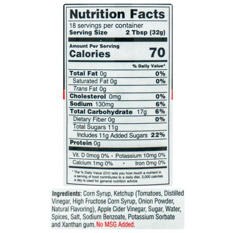 - Ingredients: Ketchup (red ripe tomatoes, distilled vinegar, high fructose corn syrup, corn syrup, salt, spice, onion powder, natural flavor), High Fructose Corn Syrup, Apple Cider Vinegar, Sugar, Water, Salt, Spices, Citric Acid