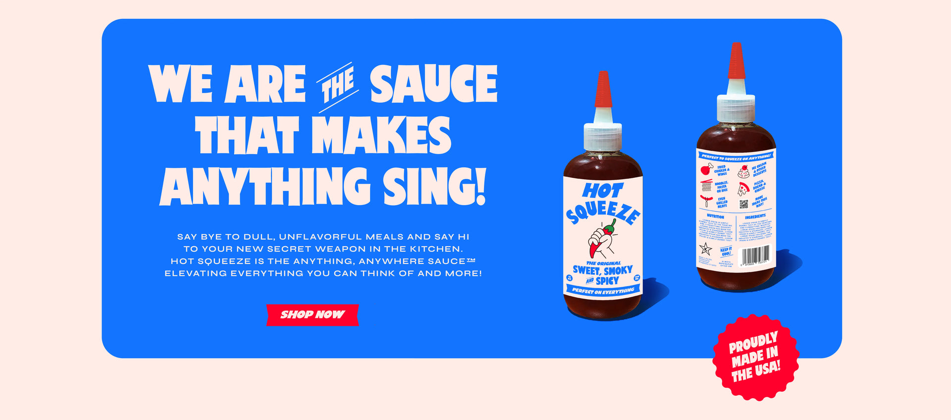 Say bye to dull, unflavorful meals and say hi to your new 'ace up your sleeve' in the kitchen! Hot Squeeze is the anything, anywhere sauce elevating everything you can think of and more!
