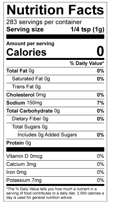 - Ingredients: Salt, Chili Pepper And Other Spices, Sugar, Dehydrated Garlic & Onion, Paprika, Disodium Inosinate & Disodium Guanylate, Natural Hickory Smoke Flavor, Citric Acid, And Not More Than 2% Soybean Oil & Silicon Dioxide Added As Processing Aids.