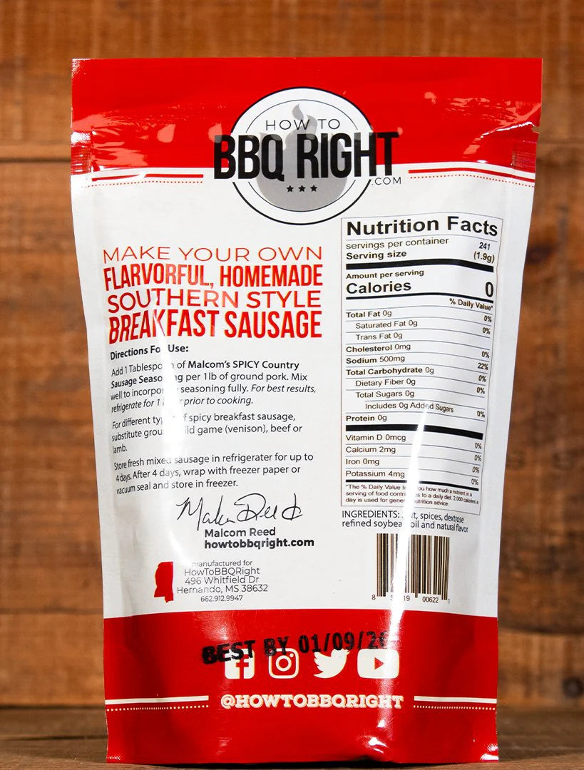 Directions for use: Add 1 Tablespoon of Malcom's SPICY Country Sausage Seasoning per 1lb ground pork. Mix well to incorporate seasons fully. For best results, refrigerate for 1 hour prior to cooking.