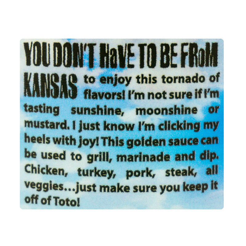 YOU DON’T HAVE TO BE FROM KANSAS to enjoy this tornado of flavors! I’m not sure if I’m tasting sunshine, moonshine or mustard. I just know I’m clicking my heels with joy! This golden sauce can be used to grill, marinade and dip. Chicken, turkey, pork, steak, all veggies…just make sure you keep it off of Toto!