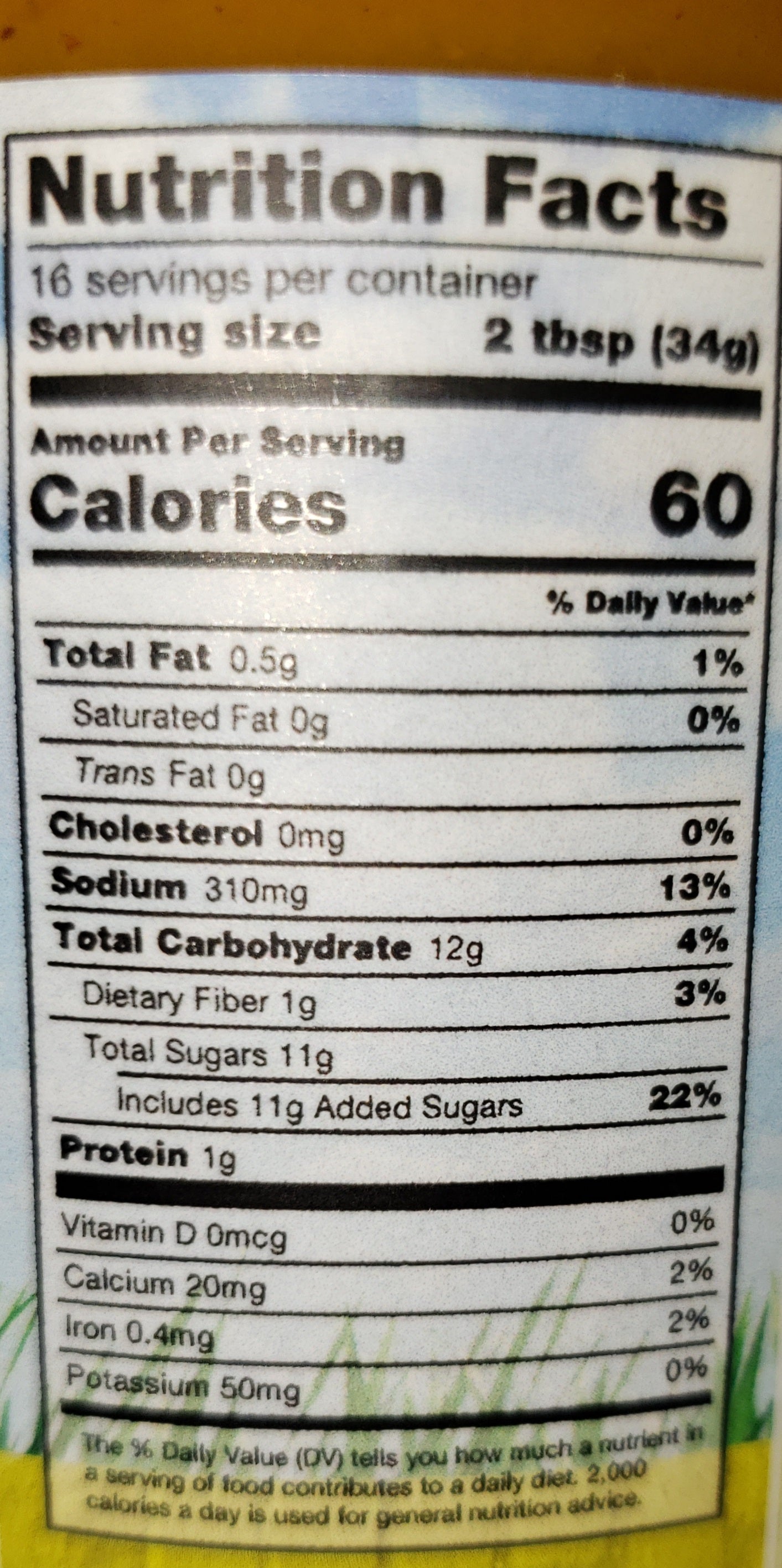 - Ingredients: Prepared mustard (water, vinegar, mustard seed, salt, turmeric), brown sugar, honey, sugar, tomato paste, distilled vinegar, salt, spices (including paprika and chili pepper), natural flavors, apple cider vinegar, dehydrated onion and garlic, tamarind extract, vanilla extract, molasses