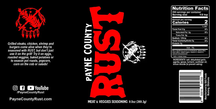 PAYNE COUNTY RUST MEAT & VEGGIES SEASONING...Payne County Rust's firstborn and number-one seller for more than 20 years!