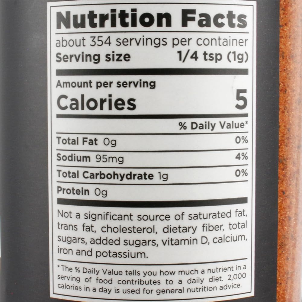 - Ingredients: Sugar, salt, spices including chili pepper, monosodium glutamate, garlic, paprika, onion, brown sugar, bell pepper, extractives of paprika (color), natural mesquite flavor, citric acid and not more than 2% tricalcium phosphate added to prevent caking.