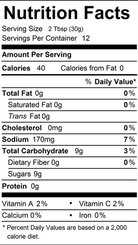 - Ingredients: Vinegar, water, brown sugar, tomato paste, pure cane sugar, natural smoke flavor, salt, spices, xanthan gum.